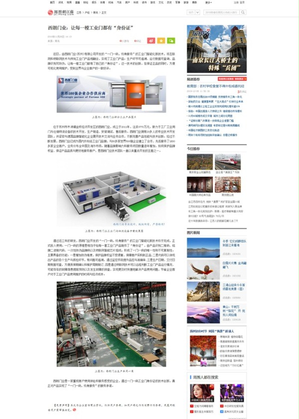 上圖為:《物聯中國》對西朗門業的報道