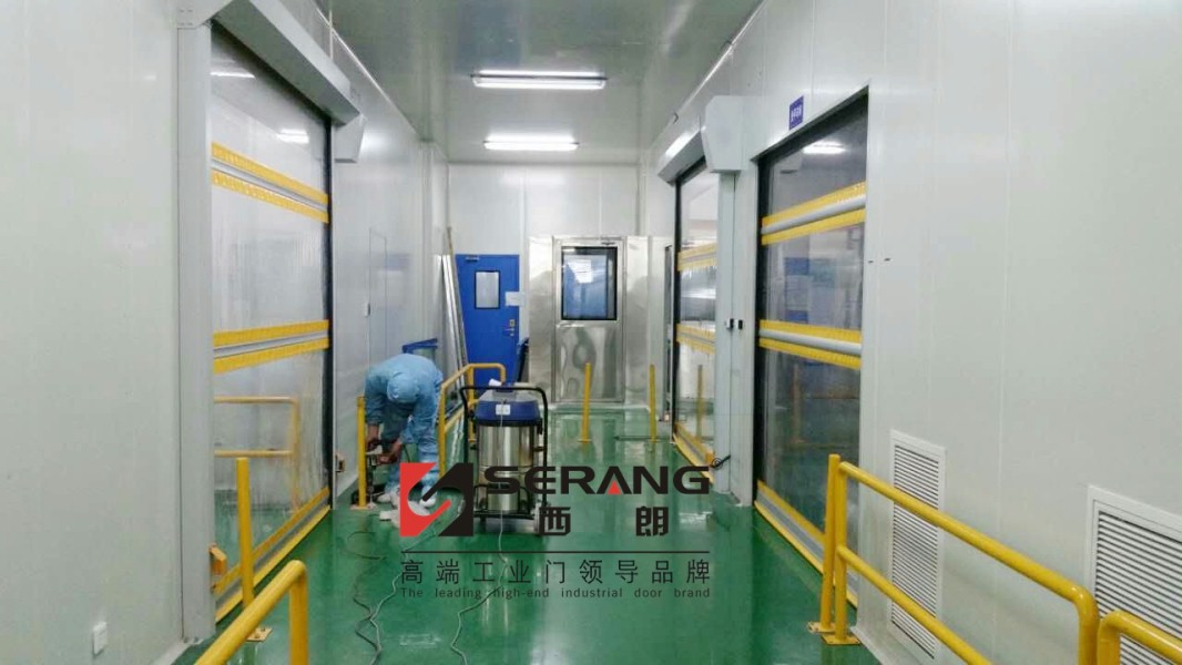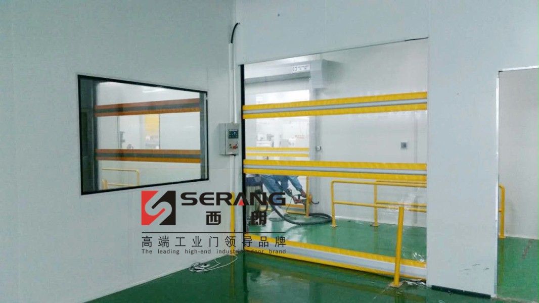 西朗訊:2016年4月18日,江蘇某行業龍頭民營企業,標準化凈化工廠配套SERANG(西朗)柔性工業快速門。全透明門簾設計黃色警示帶,車間內更加通透整潔,進出更方便安全。特殊區域配備門禁限入,常規區域使用遙控開關。[強]該企業作為行業標桿,產品高端,工廠配套也是一流水平!
