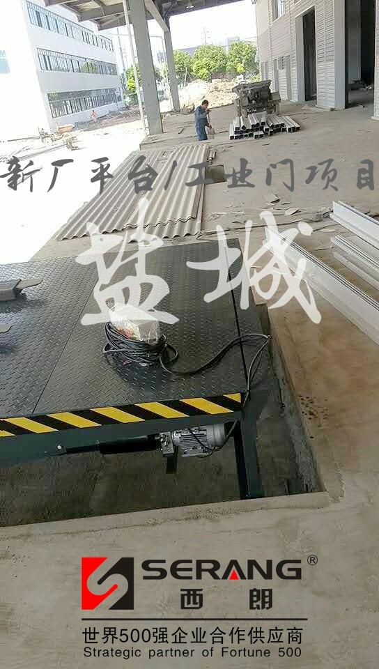 下圖為:電動液壓裝卸貨升降平臺與工業提升門安裝調試現場圖片