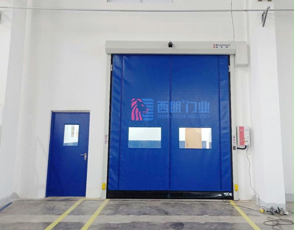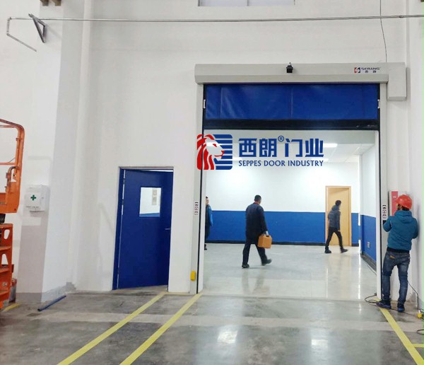 SEPPES西朗門業開發生產的蘇州人車雷達感應快速卷簾門,采用拉鏈式鎖合結構工藝,具有獨家技術專利:防撞出軌自動復位輪裝置,該項技術是由蘇州西朗門業開發完成,并由國家專利局頒發技術專利證書??蛻暨€選擇了藍色門簾,配合藍色鋼制平開門,凸顯客戶工廠車間的主色調,同時藍色具有工業感,干凈整潔。