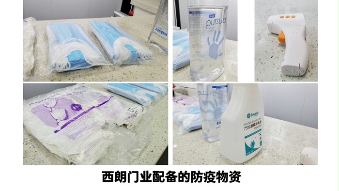 西朗門業復工防護物資:醫用口罩、消毒洗手液、殺毒液、額溫儀、一次性手套等