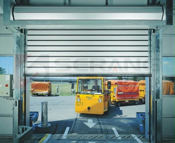門簾機構:節制式門簾機構,由鋁合金簾片、軟連接膠條、承重膠鏈、導向輪等幾個部分組成,可選配透明視窗,軟連接部分折疊壽命達百萬次以上;通過聚氨脂材質的導向輪在鋁合金軌道內滑動,高速運行無磨擦和噪音。