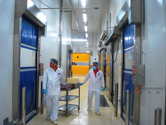 USU304不銹鋼快速門用于披薩食品制造工廠內高潔凈車間。